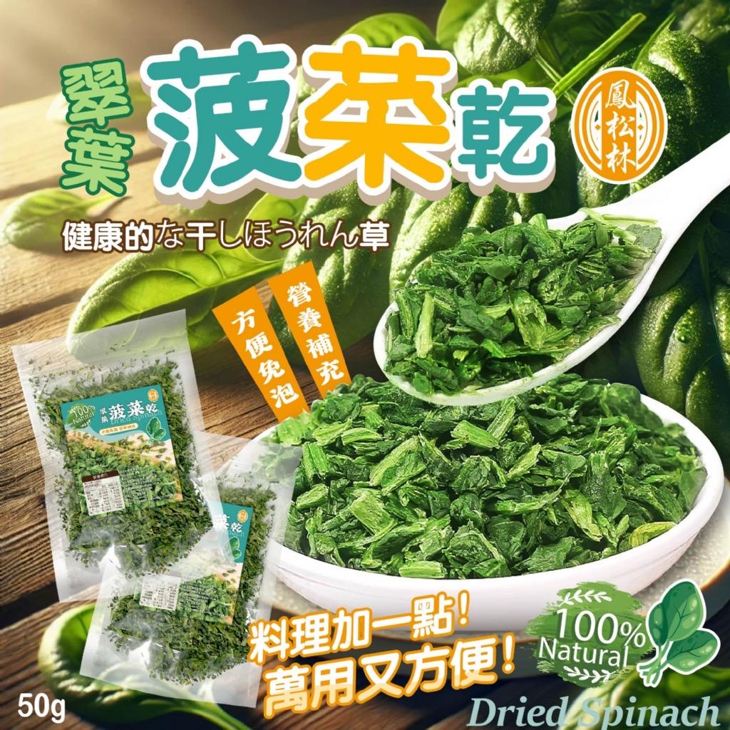 台灣鳳松林翠葉菠菜乾 50g 售價:$49/包,2包或以上:$39/包 預計12月底到貨 100%純天然蔬菜乾 綠葉精華🥬營養加倍 💪補充膳食纖維的健康選擇 📣超人氣🆕🆕全新登場 乾燥菠菜火速報到~~營養健康の翠葉菠菜乾💚 🉐嚴選在地小農細心栽種の新鮮菠菜,低溫烘乾保留營養 採用乾燥脫水技術,原色原香,新鮮封存💯 🌟輕盈爽口,健康無負擔🤩 每一口都是來自大地的純粹滋味~~ 🥬菠菜的清新➕天然濃郁的蔬菜甘甜 口感輕脆,無油無負擔 還能補充🔥膳食纖維與維生素A,健康滿分 🚫無添加防腐劑🚫無人工色素🚫無油炸 💯百分百純天然💯全家大小都適合 菠菜本身富含🈺鐵質、葉酸與多種營養成分 輕鬆補充健康活力💪🥬 不僅可當零嘴,還能加入湯品、粥品、拌飯等料理✨ ✔️自然風味✔️低溫烘焙✔️鎖住營養 ✔️夾鏈包裝✔️隨時隨地✔️開袋即用 😋 一口接一口,健康美味輕鬆享受~~ -規格:50g -成分:菠菜 -產地:台灣 -保存期限:1年 -保存方式:請置於低溫乾燥處,開封後請盡快使用完畢 ==⚠️聲明⚠️== 1.本貨品為平行進口正貨 2.所有帖文內容只作分享及參考用途,為免混淆視聽,所有商標或版權均屬有關商品品牌商標的持有人,敬請留意。 3.顏色或因拍攝器材或顯示螢幕等因素而與實物有異,以上圖片及文字僅供參考,一切以實物為準。 4.以上資料及外盒包裝只供參考,商品外盒原廠有更換新包裝權利,一切以實物為準。