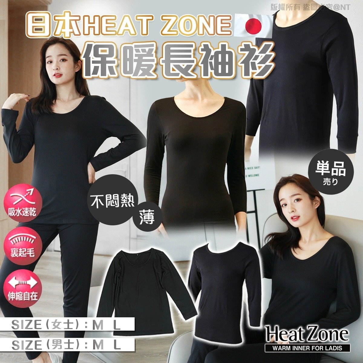 日本Heat Zone 保暖長袖衫(圓領)(女士)(黑/灰色隨機) 售價:$78件,2件或以上$68件 A-M碼 B-L碼 預計12月底到貨 天氣開始涼啦❤🔥去日本必定搶購嘅保暖內衣😘Heat zone係日本紅到去台灣,薄得嚟勁夠暖👍🏻勁正 真係比U計更好著嘅保暖內衣,📦快D入貨啦~ 特製纖維布料,添加💦化妝品等級的保濕成分💦 💖呵護皮膚,⬇減少乾燥引起的不適感 同時能吸收身體散發的濕氣並轉化成熱能 調節控制濕氣🌡,同時保持溫暖 & 身體乾爽🥰 😘極度輕薄,彈性極高,能貼合身體線條👯♀ 圓領8分袖設計,🧥容易與其它衣物搭配穿著 另外仲防靜電🚫,減低穿脫時因靜電產生不適感⚡ 洗滌注意事項: ◾切勿使用漂白劑。 💖温馨提示:基於衛生問題,本產品除品質問題外,其他理由一律不設退換,敬請留意! ▪顏色:黑/灰色,隨機出貨 ▪尺寸(約±2cm) : 女士M——胸圍79~87 女士L——胸圍86~94 ▪材質:65%聚酯纖維 /30%人造絲 / 5% 聚氨酯 ▪原產地:日本策劃,海外製造 ❣顏色或因拍攝器材或顯示螢幕等因素而與實物有異 ❣以上圖片及文字僅供參考,一切以實物為準