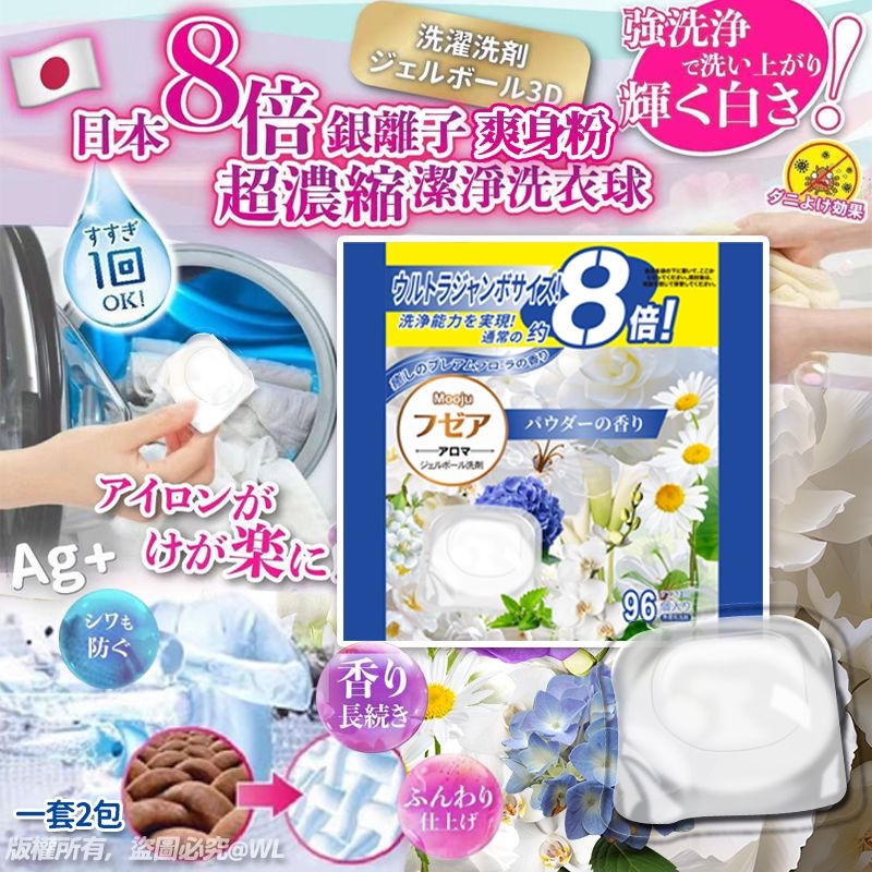 獨家日本8倍銀離子爽身粉超濃縮潔淨洗衣球96入 (1套2包)